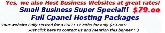 With all of our great value hosting packages comes the Free construction of your own banner, virtual business card and assistance with your product graphics if needed.